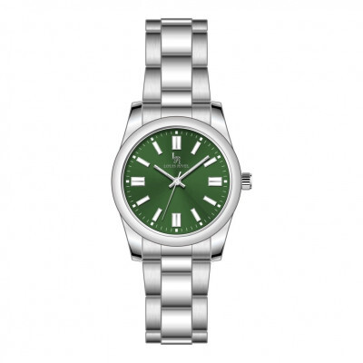ساعة رجالي بسوار ستانلس ستيل مقاوم للمياه لويس ريفالLR9800فضي ميناء اخضر