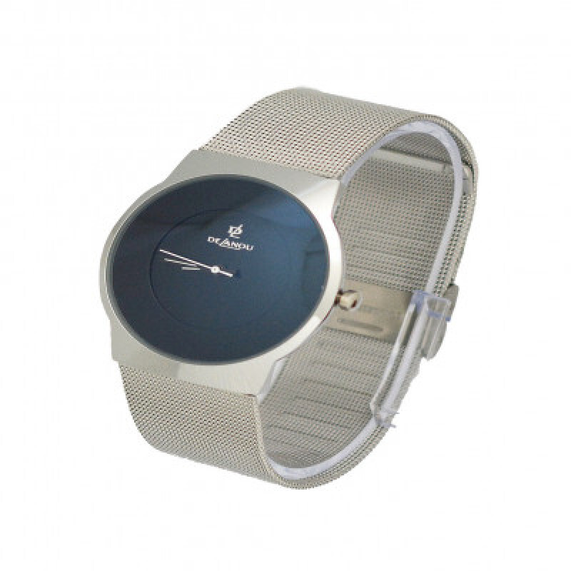 ساعة يد رجالي مميزة من ماركة ديلانو بلون فضى على شكل دائري جذاب مع حزام معدنى فضى قاعدة الساعة السفلية باللون الكحلى الغامق مع عقارب باللون الفضى مع علبة مميزة و انيقة تزيد من أناقتك وإطلالتك في المجالس العامة والخاصة و يمكن تقديمها كهدية للاهل و الاحباب.
