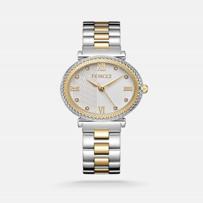ساعة نسائيه من ماركه فنشي، ساعه بسير من الستيل باللون الذهبي و الفضي ، ساعه بتصميم تقليدي عصري ، ساعة تضيف لإطلالتك طله مختلفه ، تتميز الساعه بالميناء الملفت باللون الأبيض بإطار مرصع بفصوص الزركون اللامعه ، ساعة يومية بتصميم ملائم لمختلف الأوقات ، يمكنك تنسيق الساعة مع إطلالتك العاديه لكل يوم مع جينز و تي شيرت بألوان عصريه ، او مع فستان أنيق لطله ناعمه .