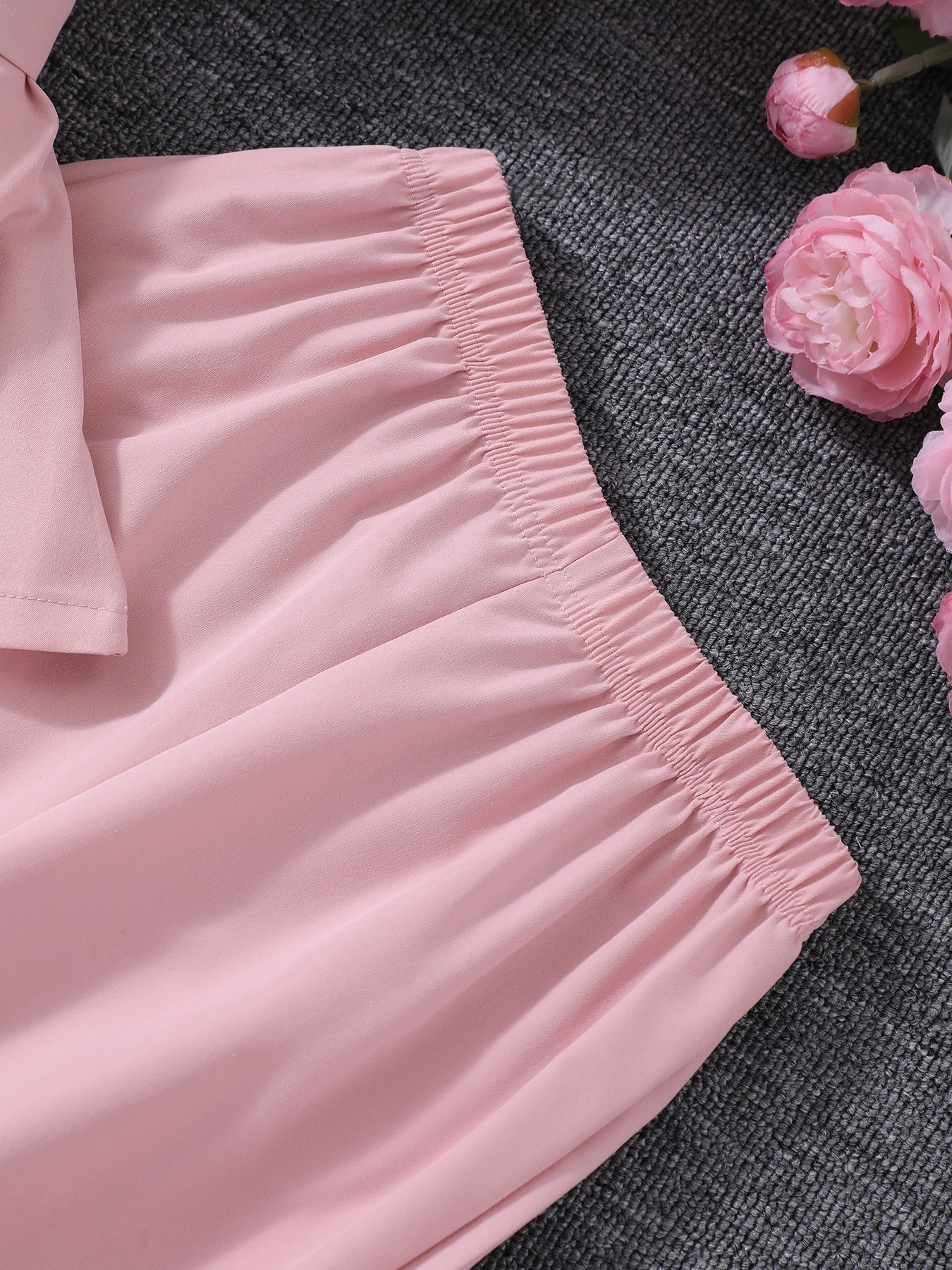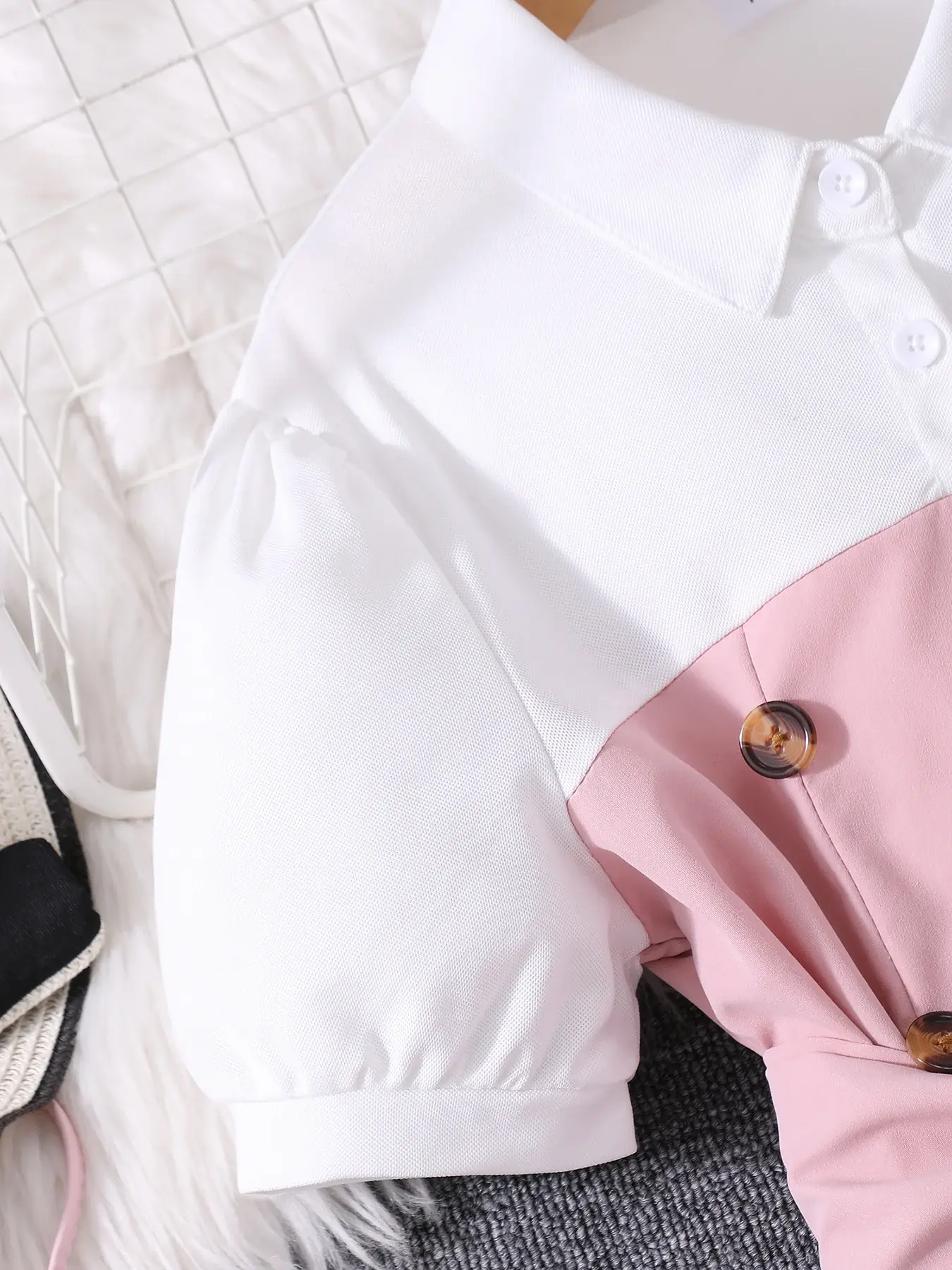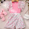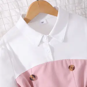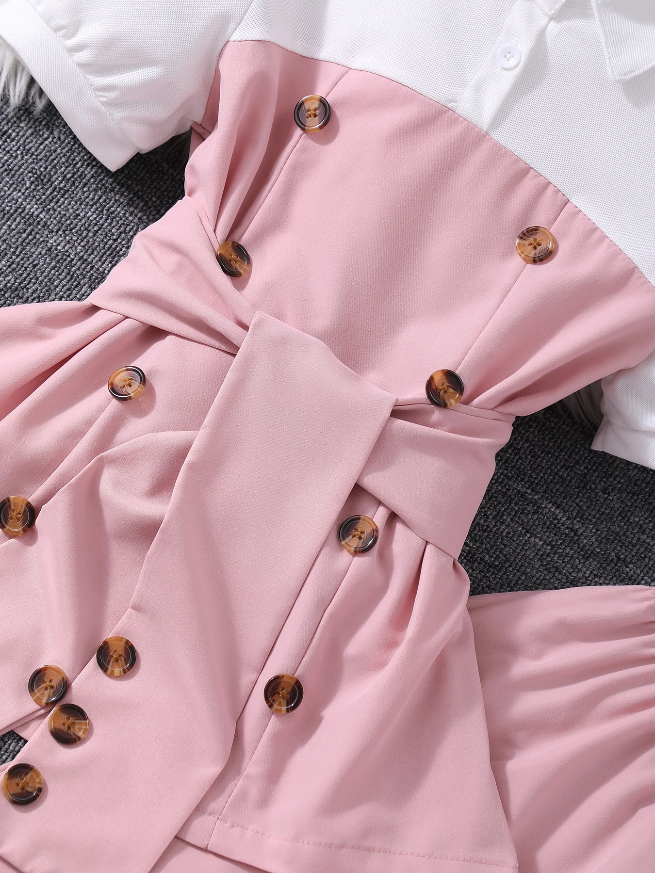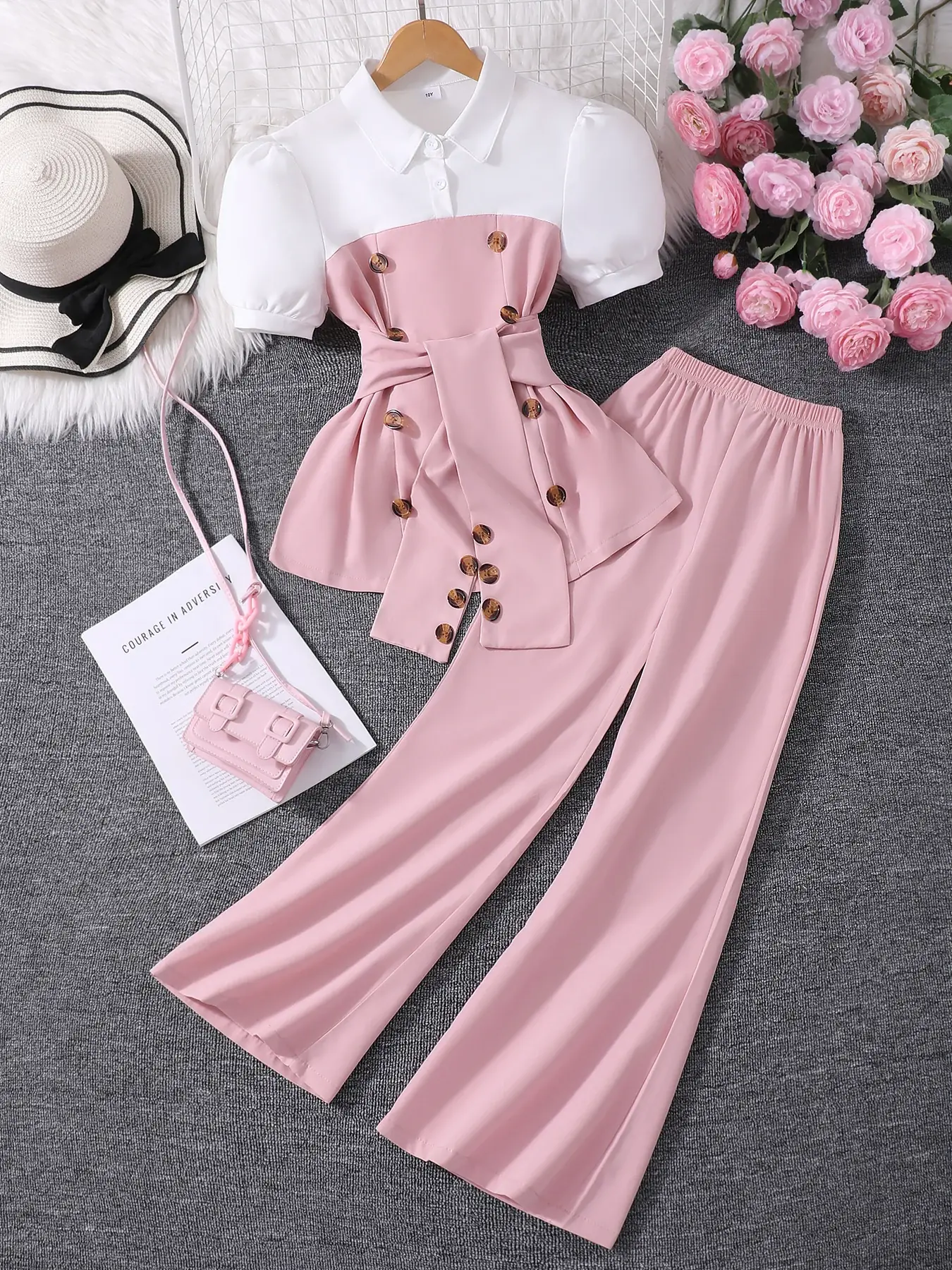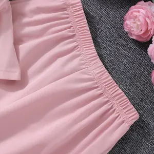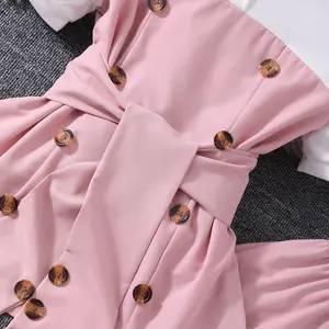 تتميز هذه المجموعة المكونة من قطعتين للفتيات بتصميم أميرة جميل بألوان متباينة وديكور مزدوج الصدر، مثالية لعشاق الموضة الصغار.