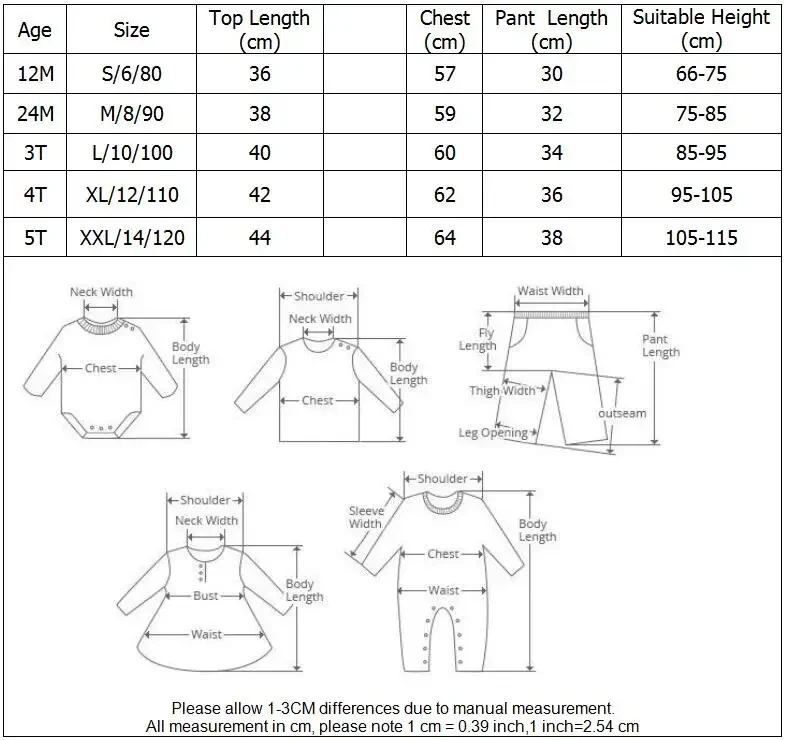 Size information : Choose 9M/12M : Send size 6/80/S.Suitable For Height 60-75 cm Choose 18M/24M/2T : Send size 8/90/M.Suitable For Height 75-85 cm Choose 3T : Send size 10/100/L.Suitable For Height 85-95 cm Choose 4T : Send size 12/110/XL.Suitable For Height 95-105 cm