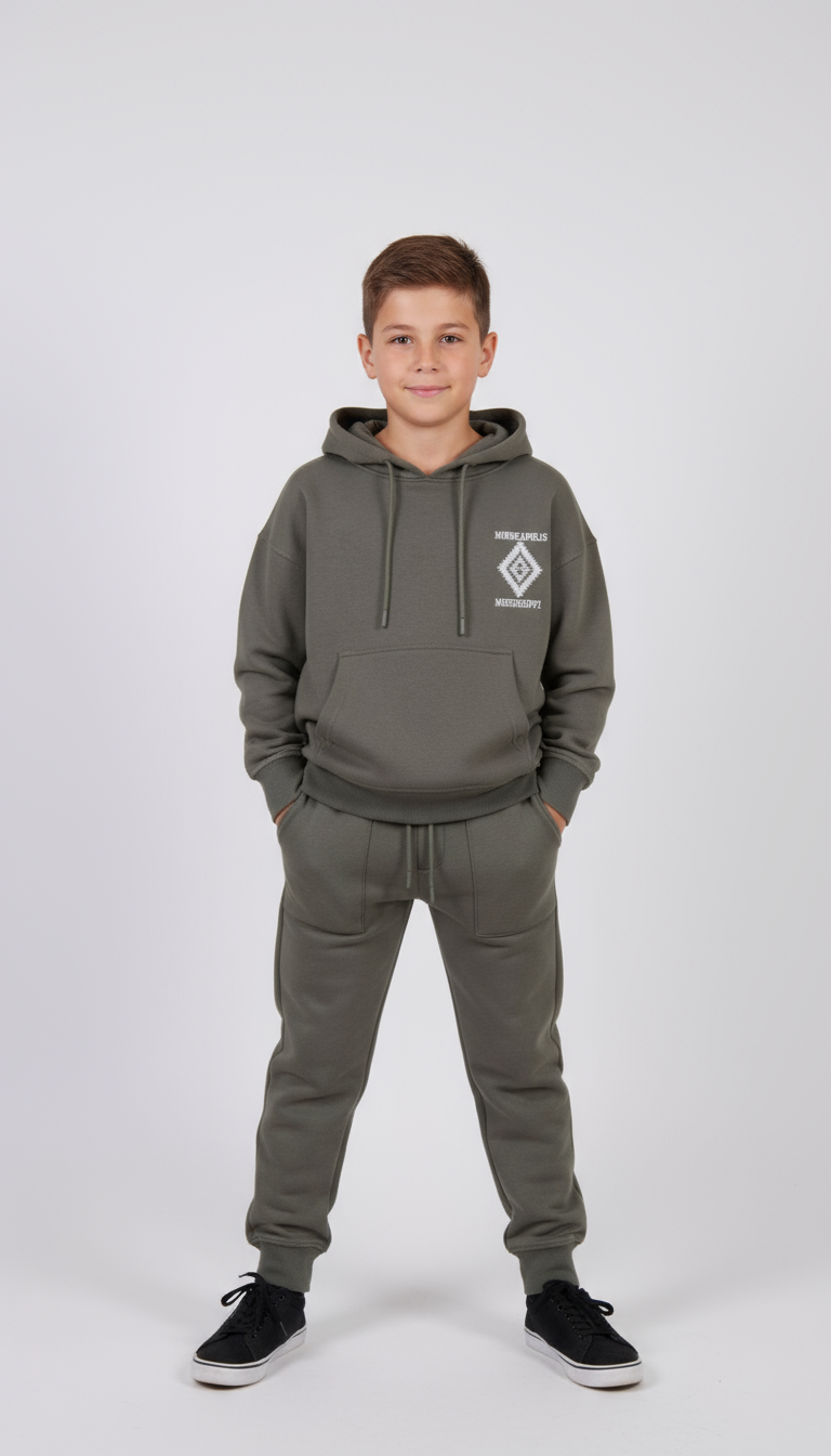طقم شتوي للأطفال بتصميم أوفر سايز مريح.