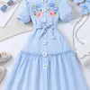 يوفر الفستان بطول الركبة تغطية مع السماح بحرية الحركة للأطفال النشيطين.