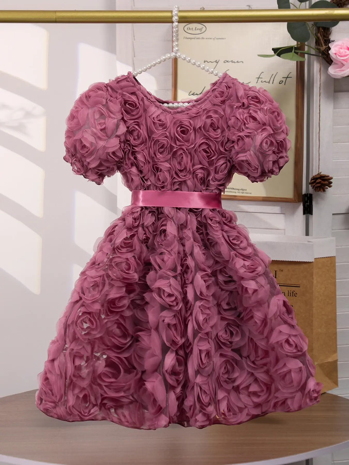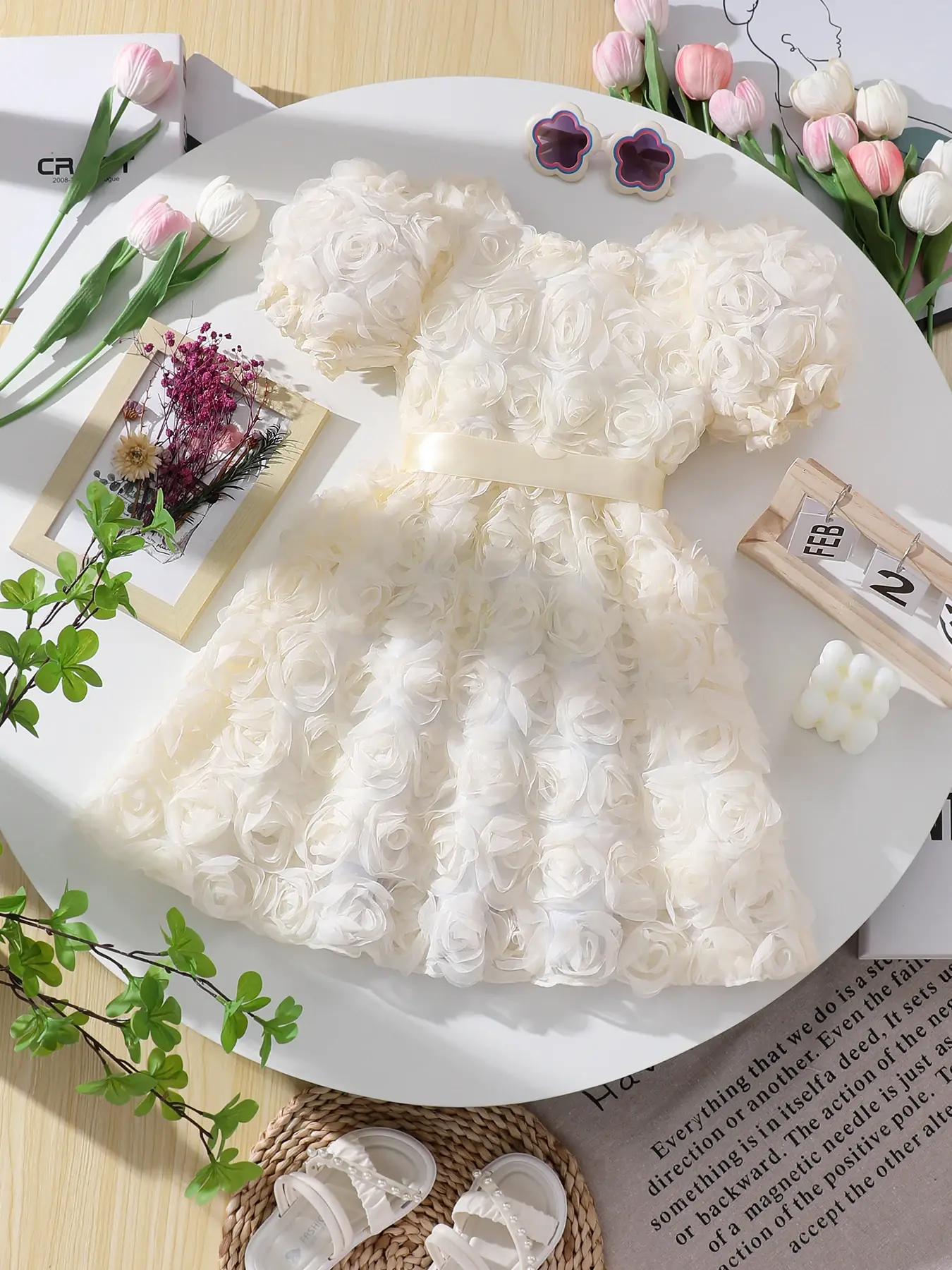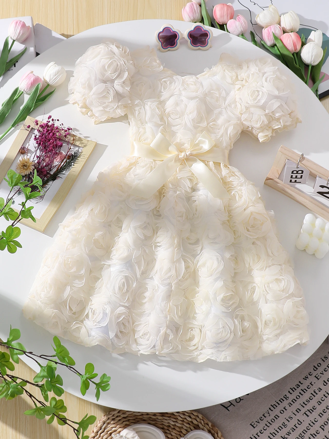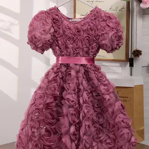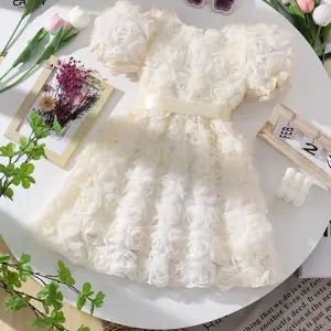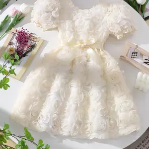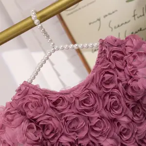 يتميز فستان هذه الفتاة بنمط وردة جميل ثلاثي الأبعاد، مما يضيف لمسة أنيقة إلى خزانة ملابسها الصيفية.