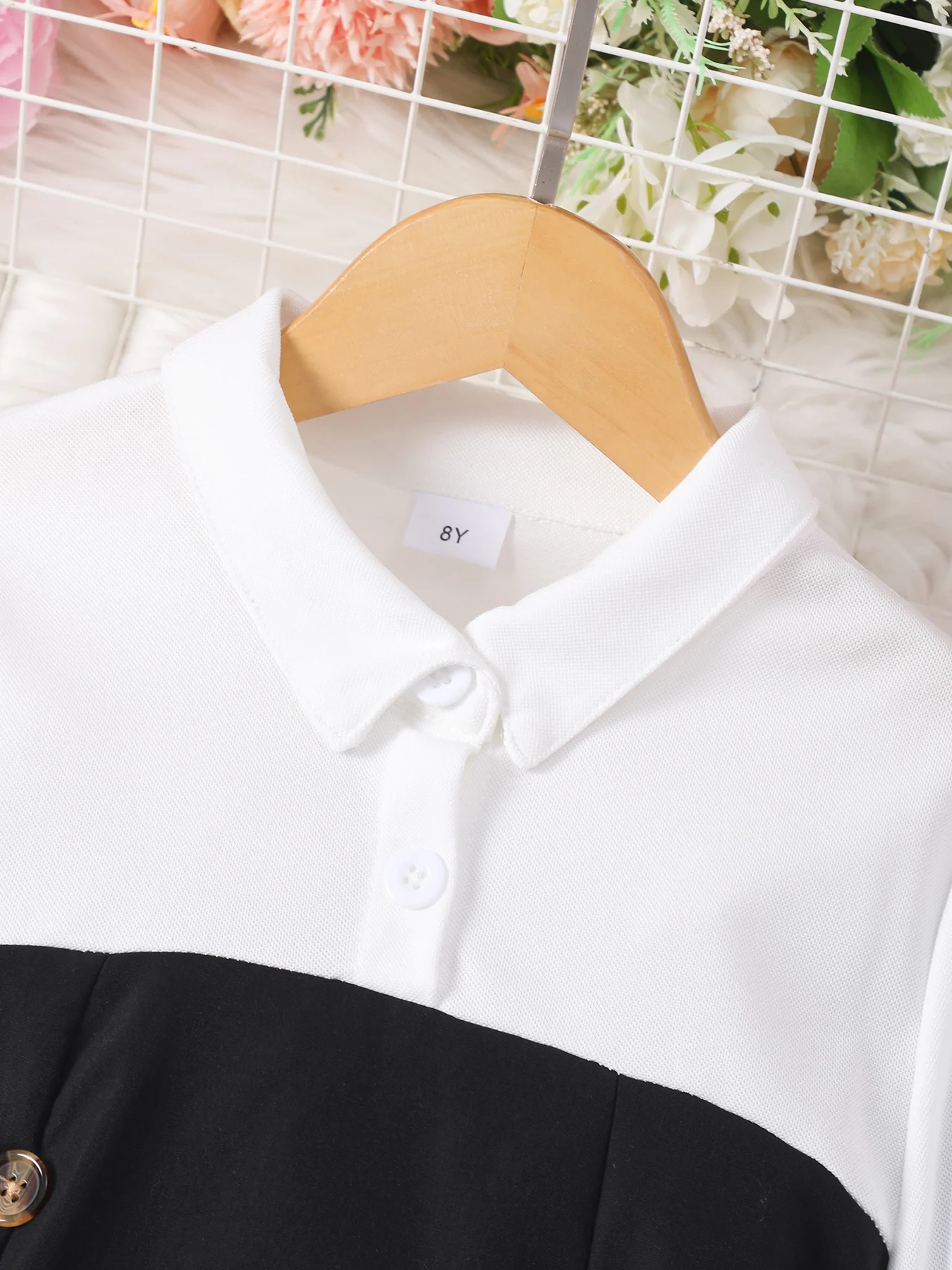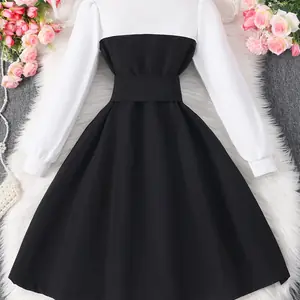 خياطة الألوان المتباينة على هذا الفستان لا تضيف فقط اهتمامًا بصريًا ولكنها تعزز أيضًا أسلوبها العام ورقيقتها.