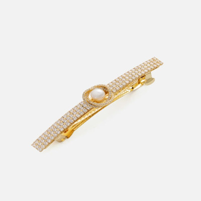 • التفاصيل: مشبك بشكل طولي مرصع بفصوص الزركون اللامعه ويتزين بحلية بشكل فص لؤلؤ في المنتصف